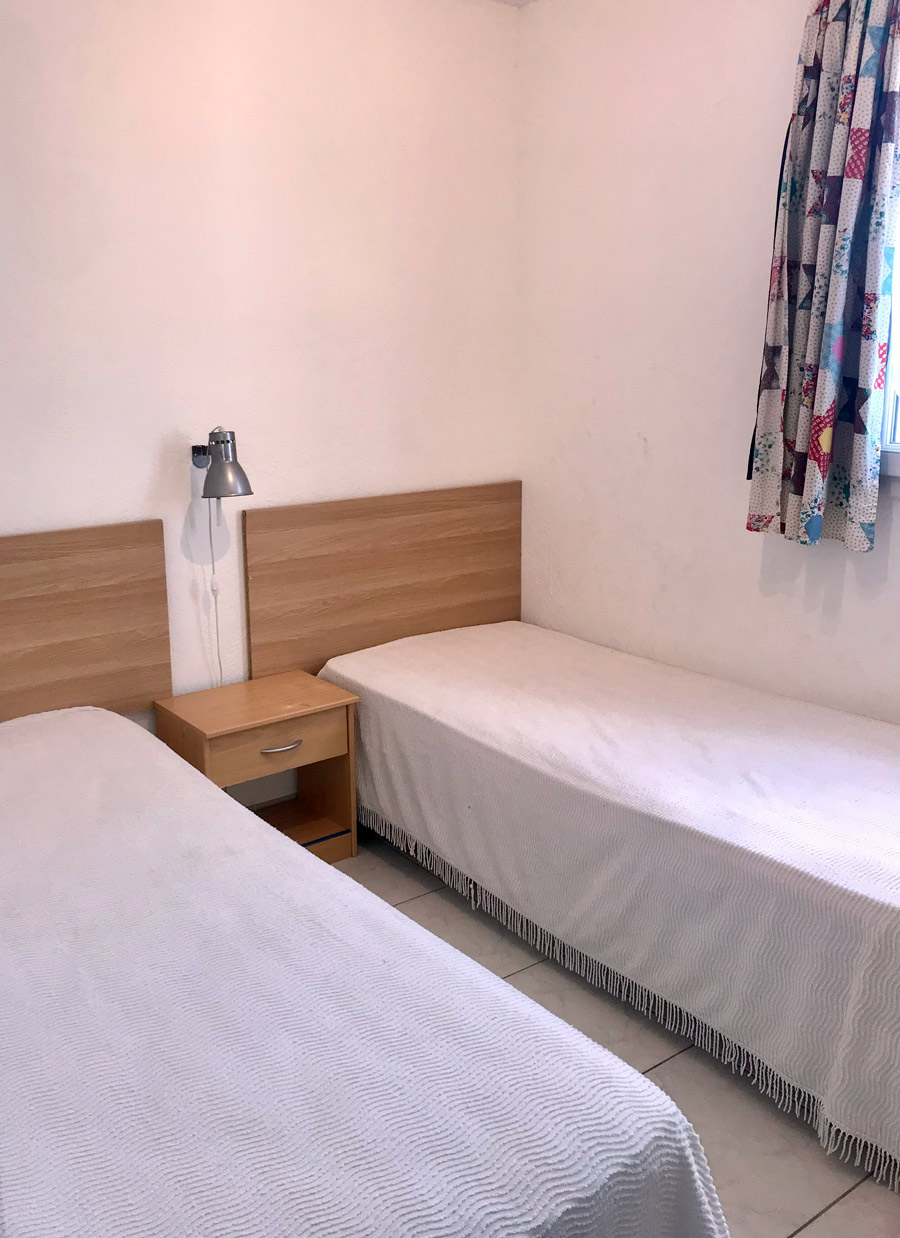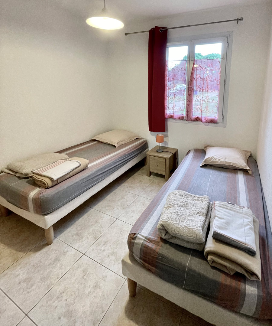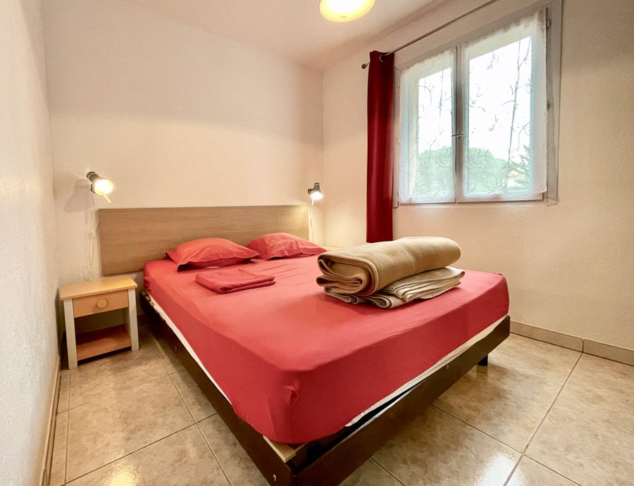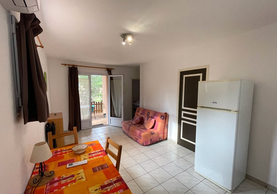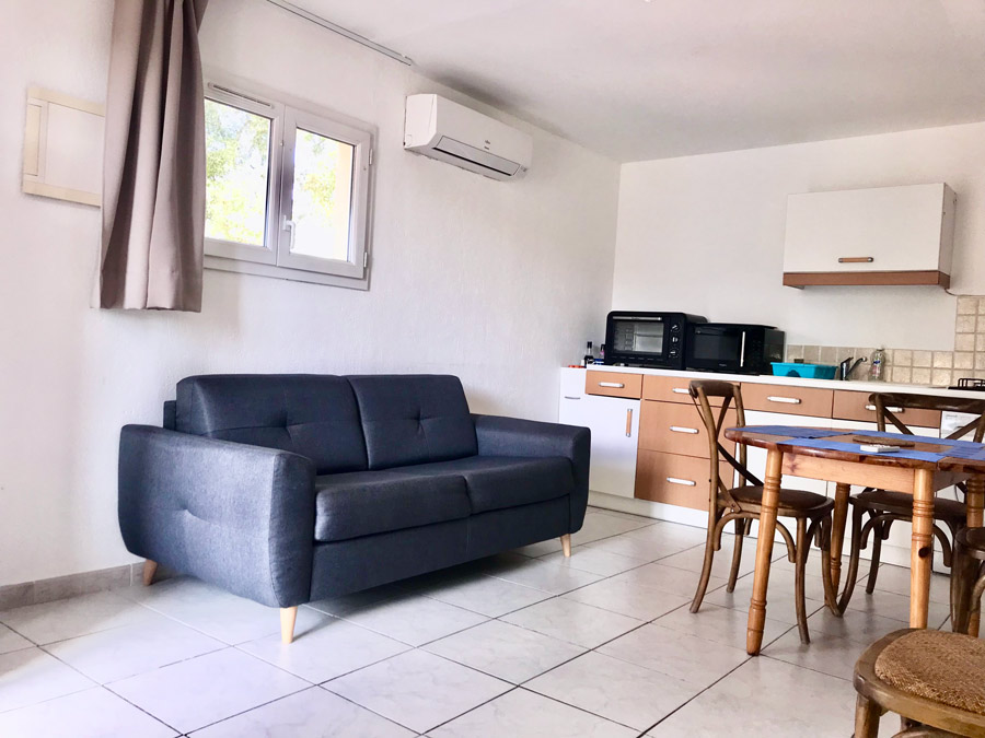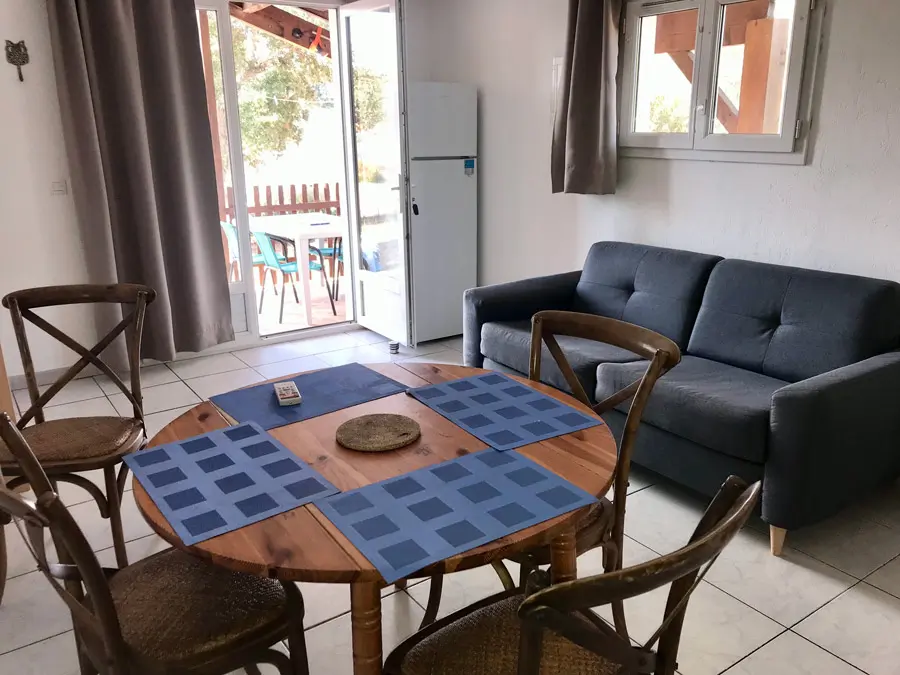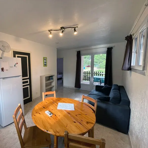 Au sein de notre mini-villa se trouve un espace de vie avec cuisine, table & canapé dépliant, 2 chambres (une double et une avec deux lits simples), une salle de bain et des toilettes séparés.